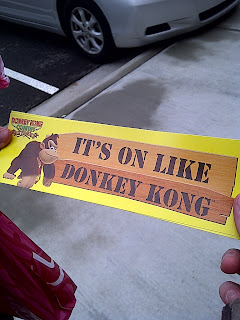 While eating lunch with Red at Chick-Fil-A we look out the window to see this. Did you do a double take? We did!